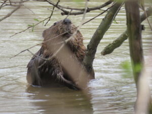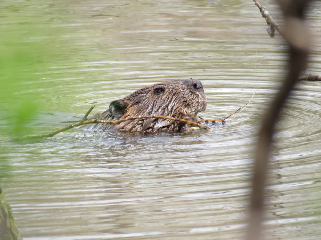Le castor que notre photographe a pris nageant et grugeant des branches s’en donnait à cœur joie.