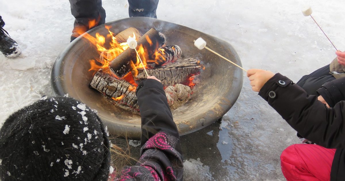 Guimauves et chaleur lors d’une Fête d’hiver d’Ahuntsic-Cartierville au Pavillon d’accueil du Parcours Gouin. Photo: JDV / Philippe Rachiele