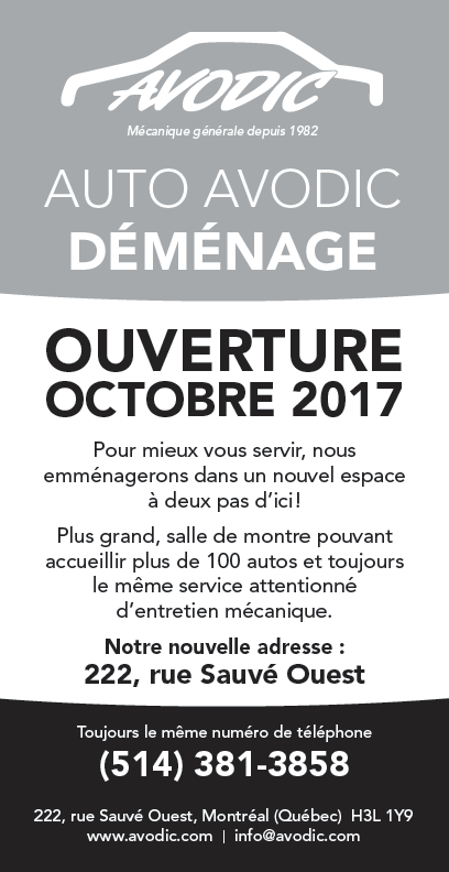 Nous joindre 222, rue Sauvé ouest Montréal (Québec) H3L 1Y9 514 381-3858 Courriel : info@avodic.com Adresse URL : http://www.avodic.com