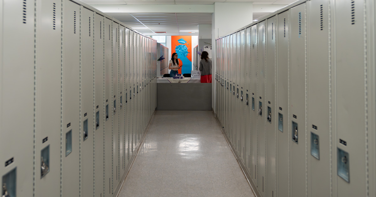 Les visiteurs étaient accueillis par une ou un élève expliquant comment se retrouver parmi les nombreux kiosques durant la foire entrepreneuriale de Sophie-Barat. (Photo: François Robert-Durand, JDV)