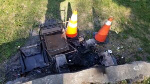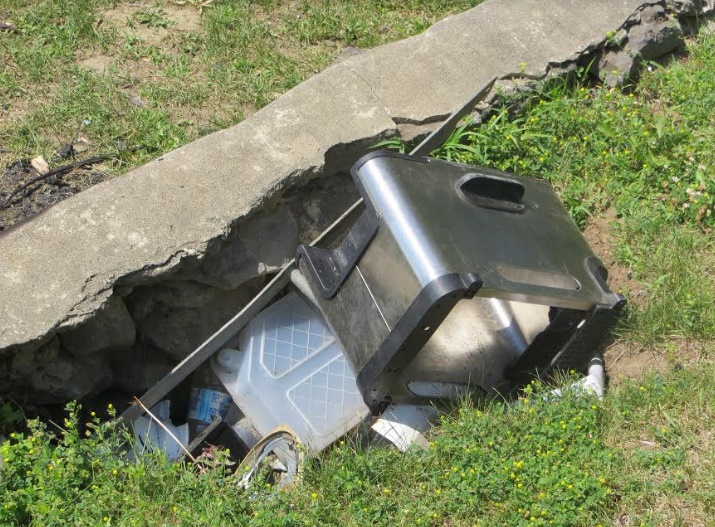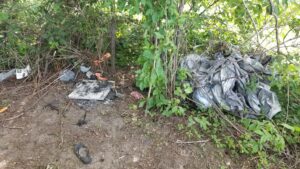 Dans cette partie, archive.jdv.symbiodev.xyz a surtout constaté la présence de nombreuses bouteilles, principalement d’alcool ou de soda, d’emballages de nourriture, et enfin… d’une boîte aux lettres, toutes choses qui étaient éparpillées sur le site. Plusieurs objets métalliques, dont ce qui semble être une rôtissoire extérieure, étaient enterrés dans un trou.