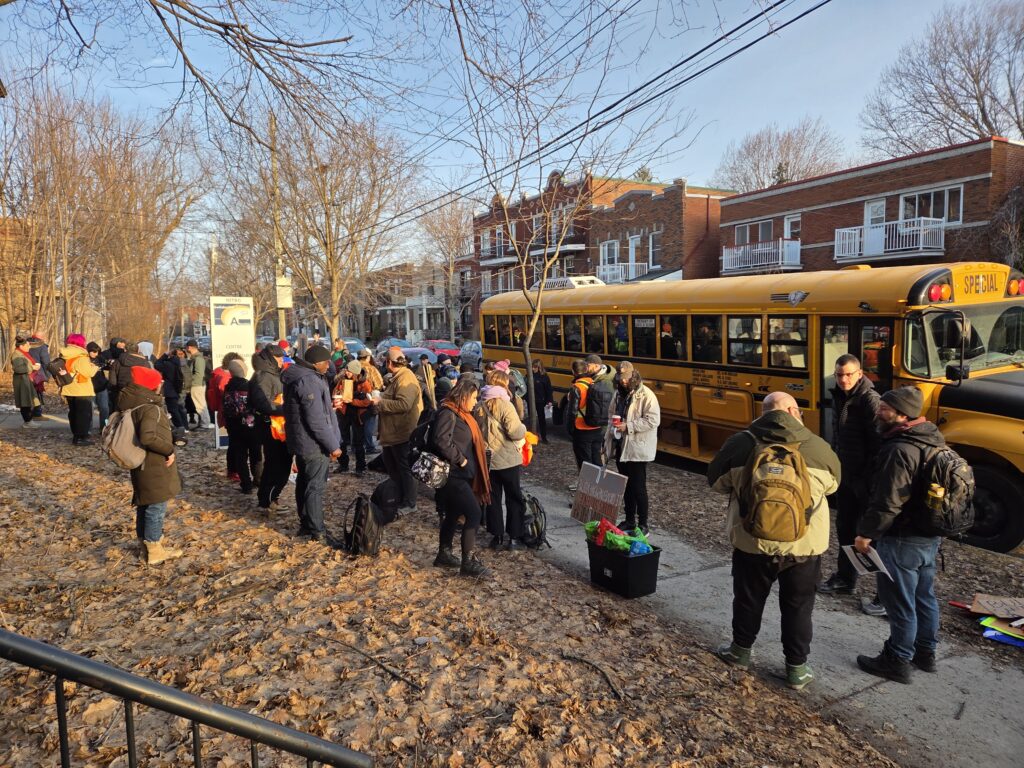 Près de 90 travailleurs communautaires ont quitté tôt ce matin, 2 avril, l’arrondissement pour Québec. Photo : Benoît Dosseh/JDV
