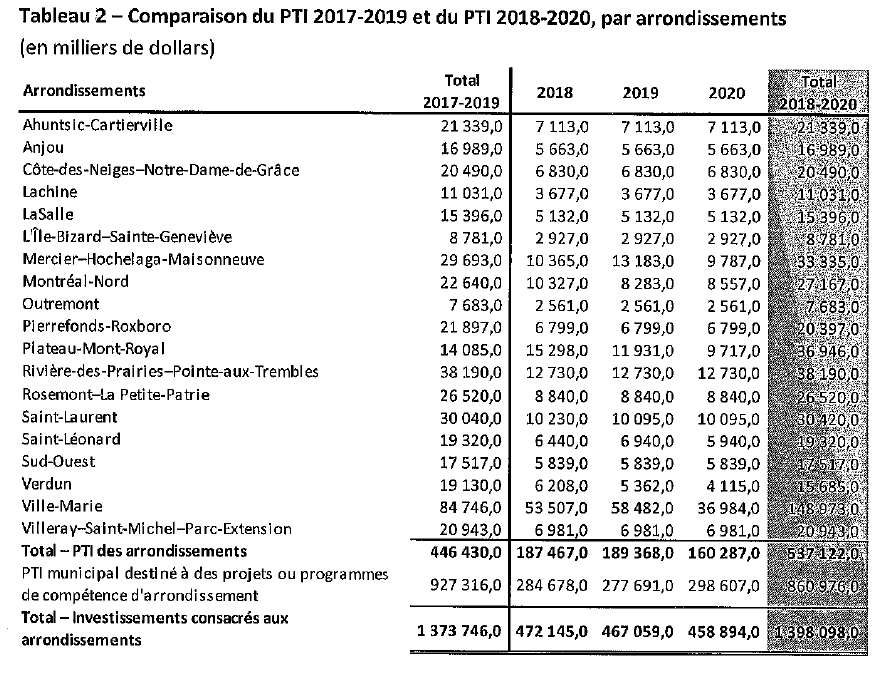 Pour en savoir plus sur le PTI 2018-2020 de la Ville-centre et de la part des arrondissements, cliquez ici.