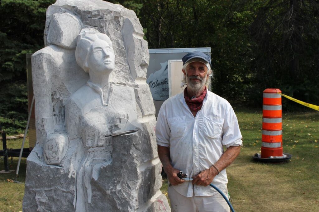 Le sculpteur Claude Des Rosiers est à l’œuvre jusqu’aux environs du 19 septembre, tout près du pavillon d’accueil du Parcours Gouin, alors qu’il réalise une sculpture en hommage à Marie Gérin-Lajoie.