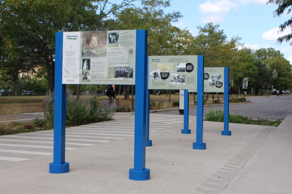 Une des affiches explicatives du Parcours Gouin met Marie Gérin-Lajoie et sa mère, Marie Lacoste Gérin-Lajoie, à l’avant-plan (Photo: Éloi Fournier – JDV)