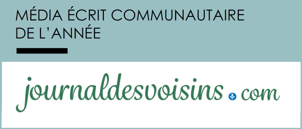 À l’occasion du gala virtuel de l’Association des médias écrits communautaires du Québec (AMECQ), Journaldesvoisins.com a été nommé le média de l’année 2020 parmi tous les médias communautaires du Québec. En outre, le jdv a raflé trois premiers prix et une mention (deuxième prix).