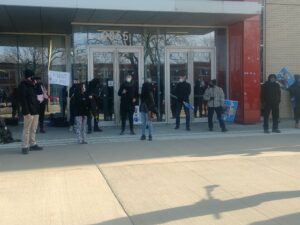 La ligne de piquetage au Collège Ahuntsic (Photo : Éloi Fournier, JDV)