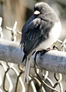 « Junco de l’Oregon » : (Rocheuses) tête noire, dos brun pour le mâle; tête brune, dos brun clair pour la femelle.