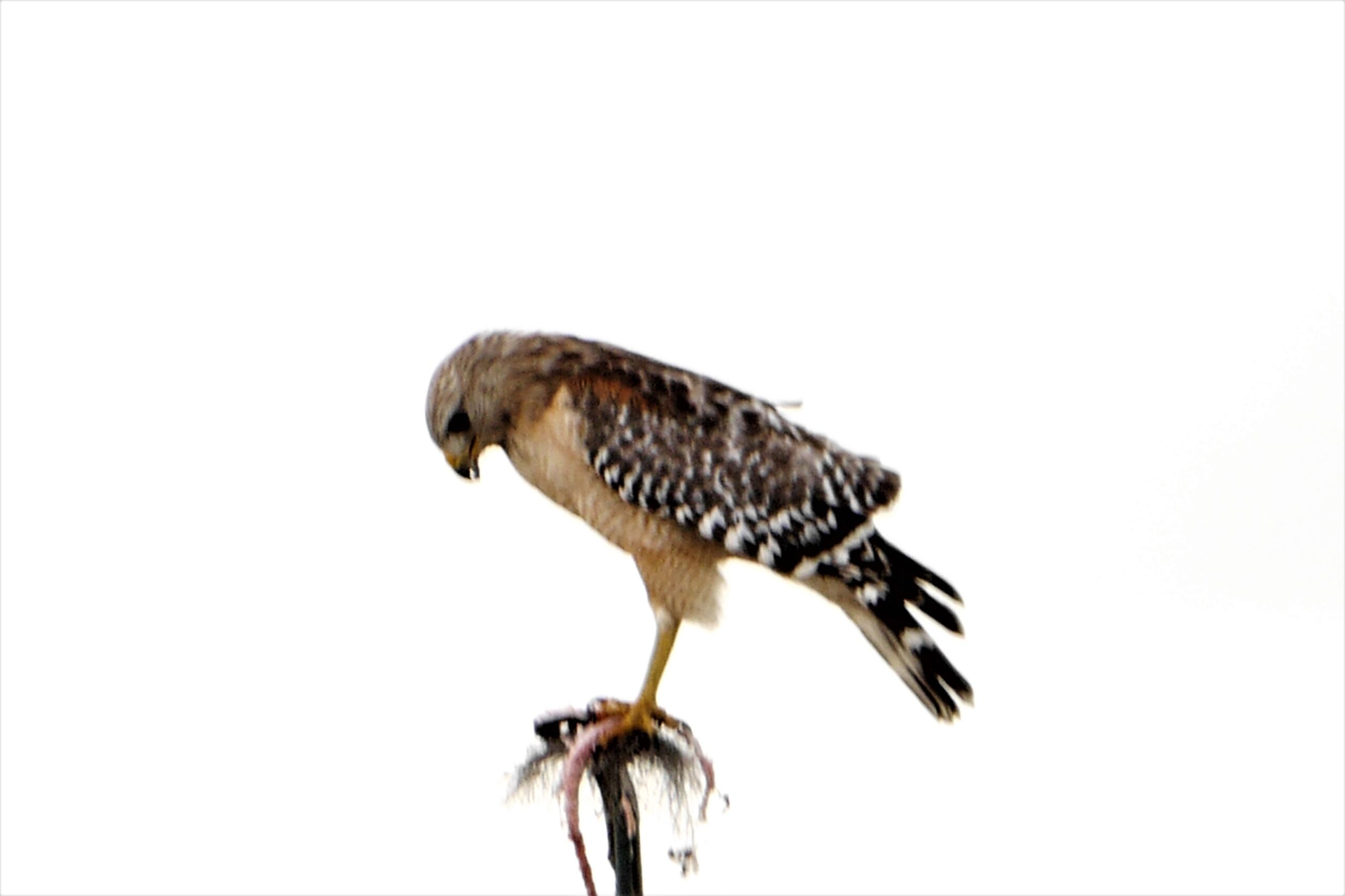 Une autre caractéristique d’identification, surtout pratique quand on observe l’oiseau en vol, est l’alternance de plusieurs bandes noires et blanches sur la queue. Un bec crochu à extrémité noire et de longues pattes jaunes complètent le tout.