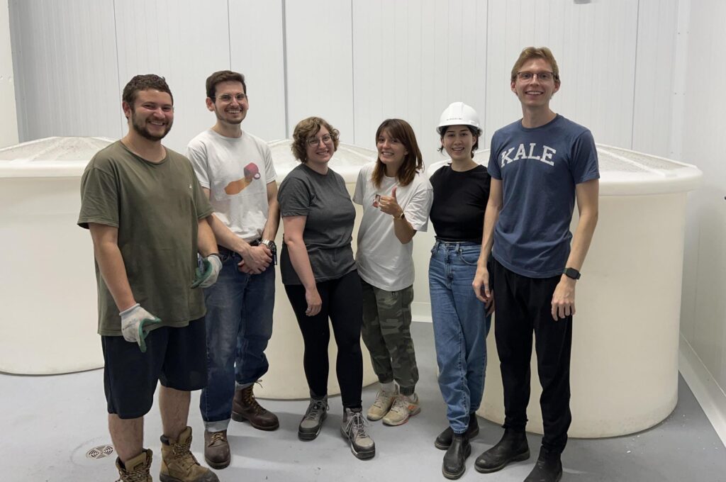 L’équipe fête la réception des réservoirs de nutriments. Victor Nicolescu, Phil Rosenbaum, Elena Fortin-Kochieva, Ophelia Sarakinis, Patricia Gaudet, Vincent McCarthy. (Photo: courtoisie)
