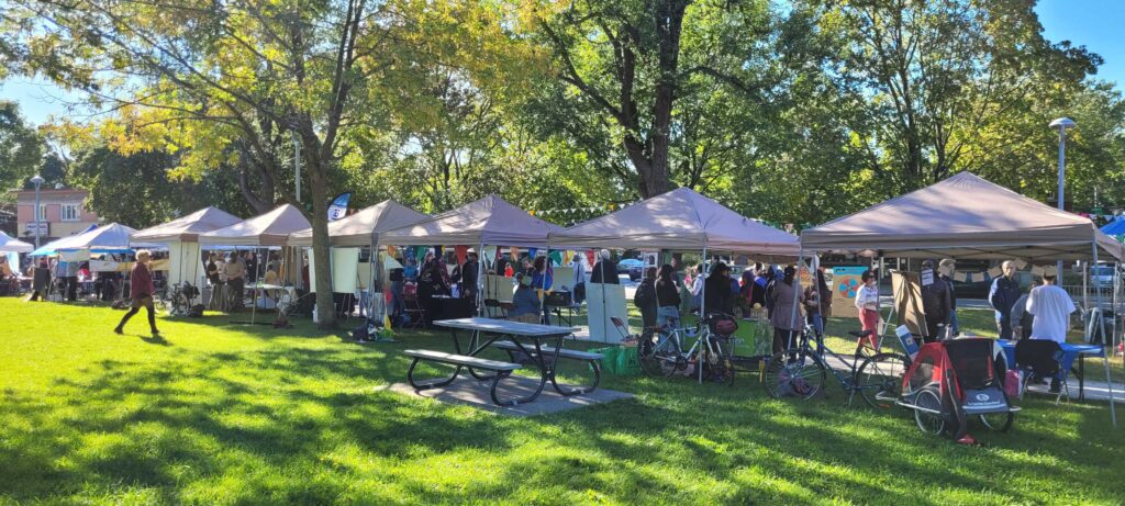 Les nombreuses tentes lors de la Foire des Possibles dans Ahuntsic, 24 septembre 2022. (Photo: Séverine Le Page, JDV)