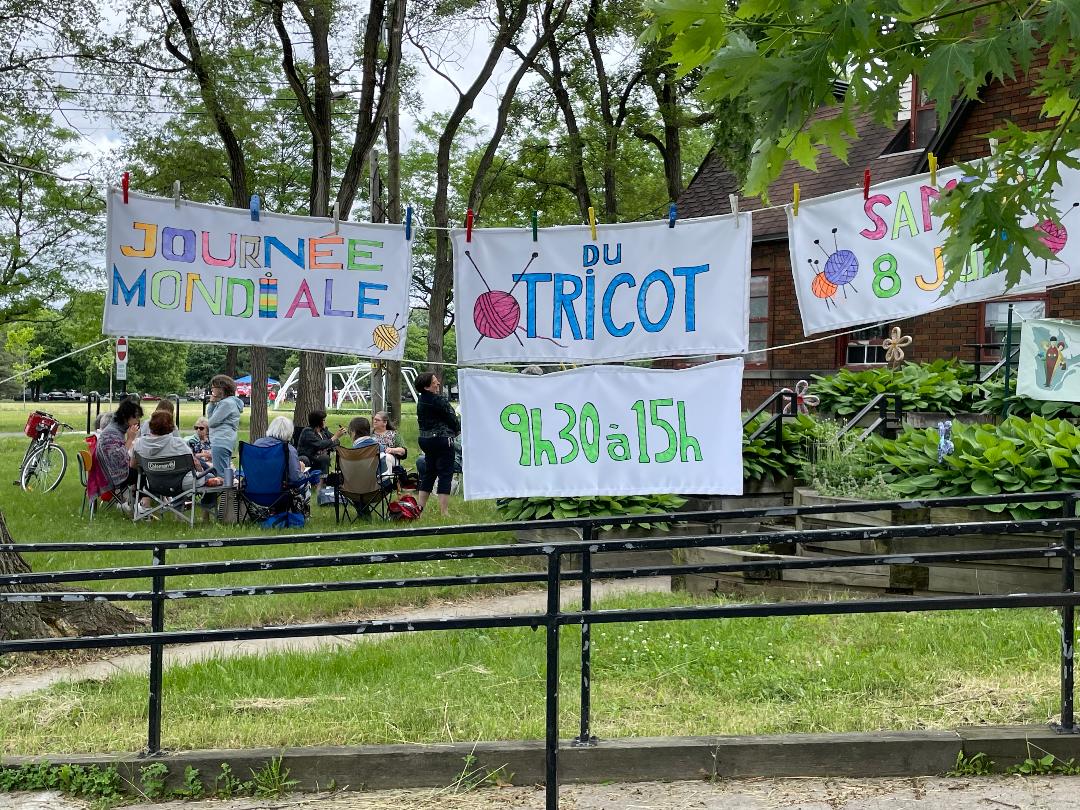 La Journée mondiale du tricot au Parc des Hirondelles (Photo: Françoise Cardinal, Cercle des fermières d’Ahuntsic)