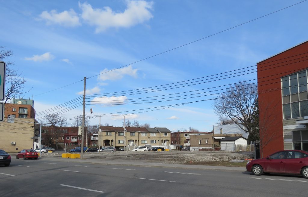 Du côté sud du boulevard Henri-Bourassa, on peut apercevoir le terrain laissé vacant par la déconstruction du cinéma Majestic, en prévision de la future bibliothèque interarrondissements (Photo: archives jdv)