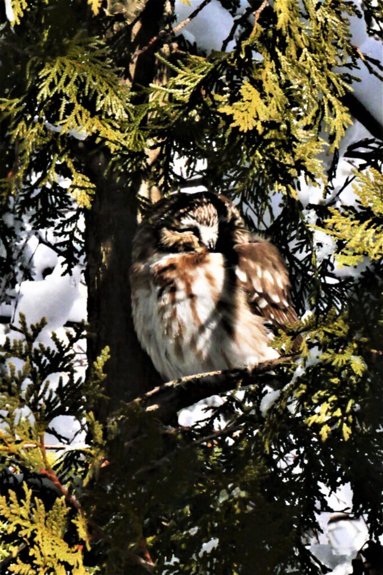 C’est le plus petit membre de la famille des strigidés que l’on retrouve à l’est de l’Amérique du Nord, et quand on la voit, on a envie de la cajoler tant elle est mignonne. La Petite Nyctale, lorsqu’elle se laisse voir, ne laisse pas indifférent.