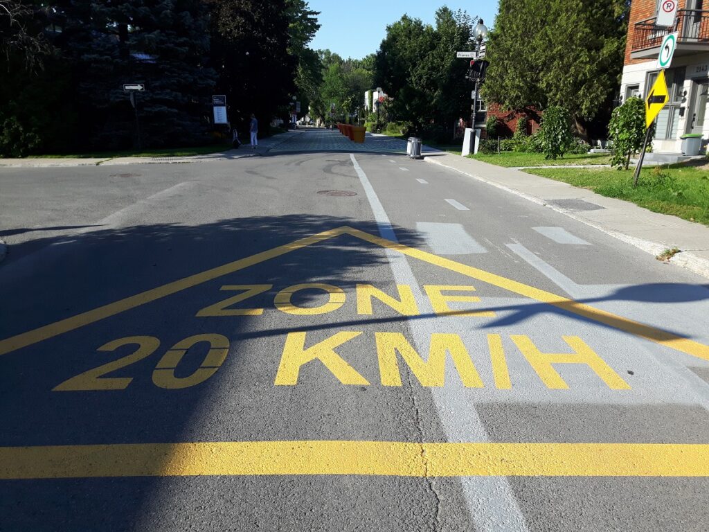 Rappelons qu’une limite de vitesse de 20 km/h est en vigueur sur la rue partagée – toutefois, certains automobilistes arrivent rapidement et ralentissent seulement une fois dans la zone.