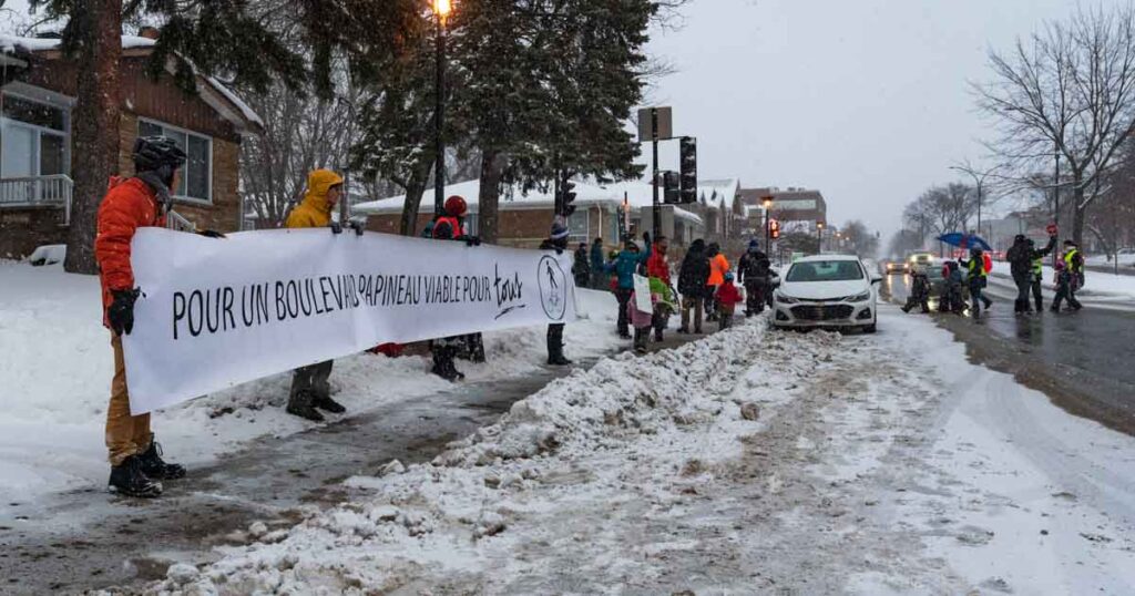 Il tenait ces propos à quelques mètres des militants d’Ahuncycle, de l’Association mobilité active Ahuntsic-Cartierville (AMAAC) et de Mobilisation environnement Ahuntsic-Cartierville (MEAC) qui manifestaient pour un boulevard urbain sur Papineau. Le prolongement de l’autoroute 19, actuellement en cours, et qui débouche sur Papineau à Henri-Bourassa, ramènera plus de véhicules à Ahuntsic dans les années à venir.
