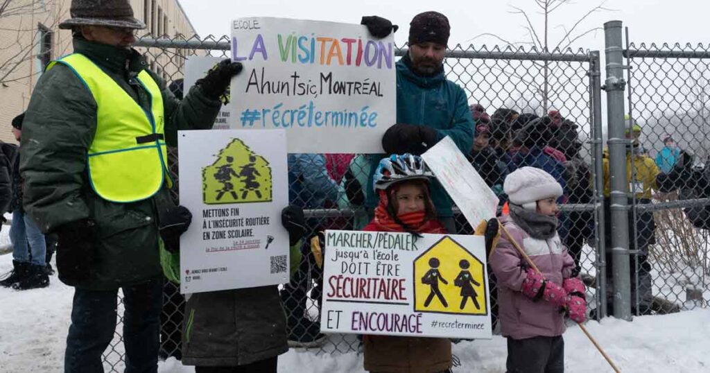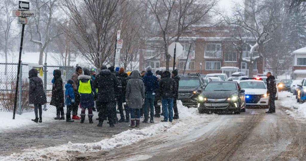 Faudrait-il plus de panneaux de signalisation, de marquage au sol, de policiers aux intersections, d’argent pour le transport en commun ou d’infrastructures pour sécuriser les déplacements des élèves? Le rassemblement de parents devant l’école de la Visitation pour demander plus de sécurité autour des établissements scolaires aura permis de faire le point sur les besoins pour s’assurer que les enfants puissent se déplacer à pied en toute sécurité. Des besoins encore loin d’être atteints.