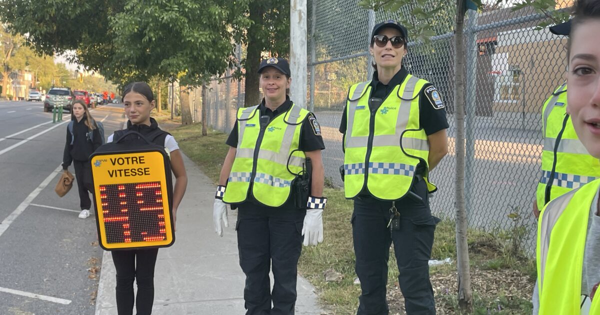 À la rentrée de septembre, les policiers font des opérations pour sensibiliser les citoyens au danger des vitesses excessives. Par exemple, aux abords des écoles, on retrouve des opérations comme celle qui a eu lieu récemment près de l’école Louis-Colin. On demande à des élèves de porter un sac à dos muni d’un afficheur de vitesse pour que les conducteurs puissent voir la vitesse à laquelle ils vont. C’est un des moyens utilisés pour sensibiliser les citoyens à respecter la limite de 30 km dans une zone scolaire.