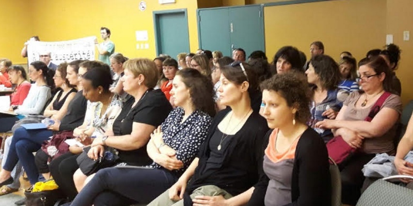Marjolaine Goudreau, présidente de l’exécutif local de l’APTS (sur le territoire Ahuntsic-Montréal-Nord) a expliqué que le travail se fait de plus en plus en silo pour des travailleurs sociaux entre autres. Ainsi, un dossier est ouvert pour une femme enceinte voulant profiter du programme OLO (aide alimentaire aux femmes enceintes) et si jamais elle a aussi un enfant en difficulté, il faut alors ouvrir un autre dossier avec un autre travailleur.