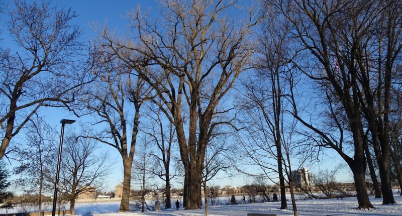 Le peuplier deltoïde principal au parc Nicolas-Viel l’hiver (Photo : Philippe Rachiele, JDV)