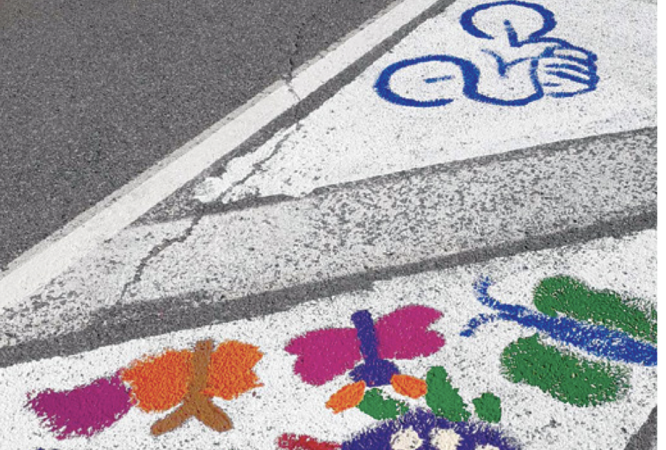 Avec le projet cycle-art, réalisé en collaboration avec des écoles du quartier, Frédéric Bataille souhaite mêler la beauté à l’utilité : «Les œuvres d’art égayent les pistes cyclables et stimulent un sentiment de fierté chez les enfants, me dit-il enthousiaste. De plus, des études portant sur des projets similaires ont montré que la présence d’œuvres d’art sur la chaussée rendait la rue plus sécuritaire. Une étude qui s’est penchée sur 17 sites aux États-Unis a montré que l’asphalt art réduisait de 50 % les collisions impliquant des piétons ou des cyclistes. Les automobilistes ont tendance à ralentir et à être plus concentrés sur leur conduite.»