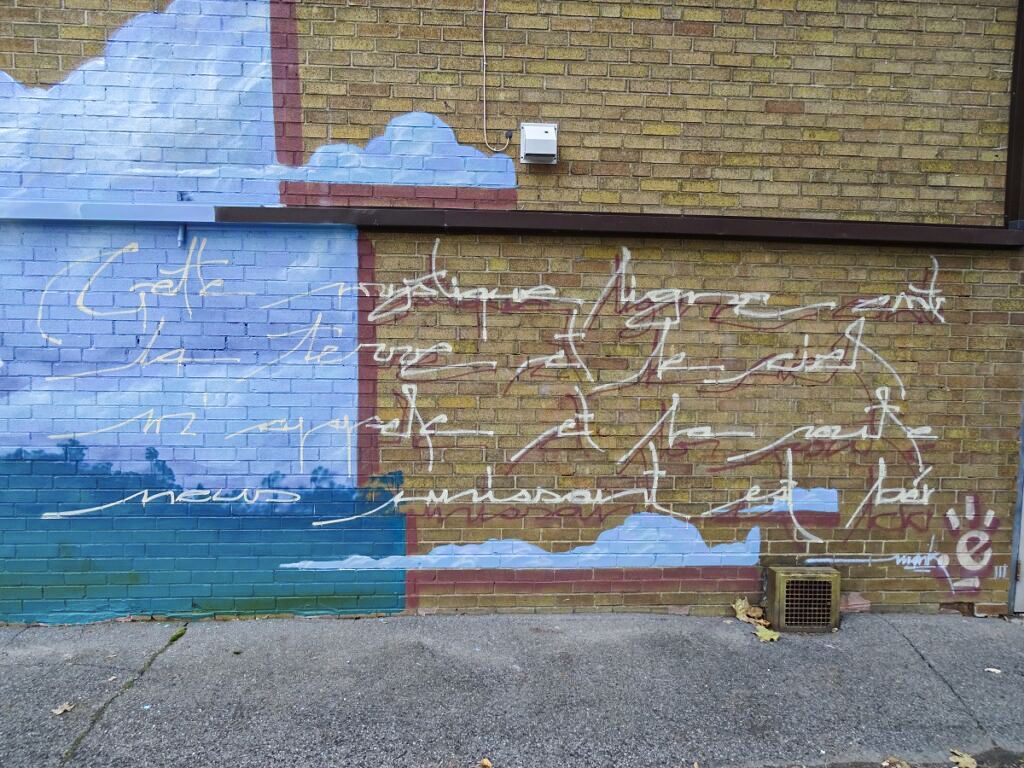 Inscription sur la petite murale au 147 Henri-Bourassa Est, coin Laverdure, poèmes proposés par Concertation-Femme (Source : jdv – Philippe Rachiele)