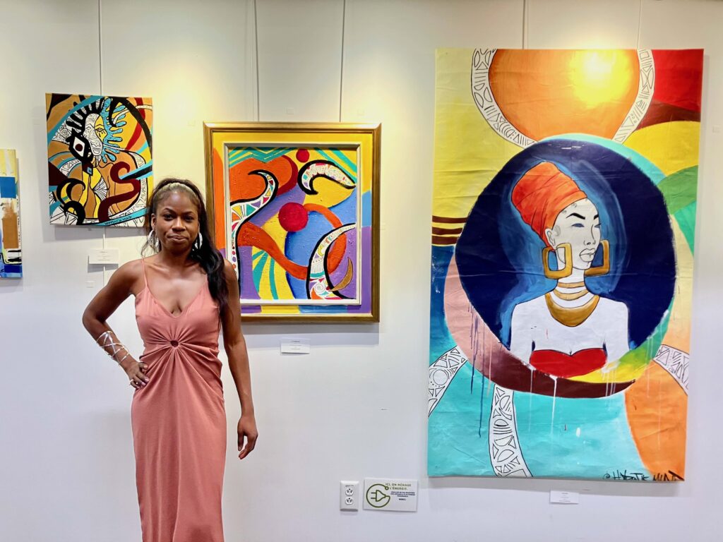 Natasha N.M, alias HYPNOTIK MIND, expose 7 œuvres au pavillon d’accueil du Parcours Gouin jusqu’au 10 décembre 2023. (Photo: Anne Marie Parent, JDV)