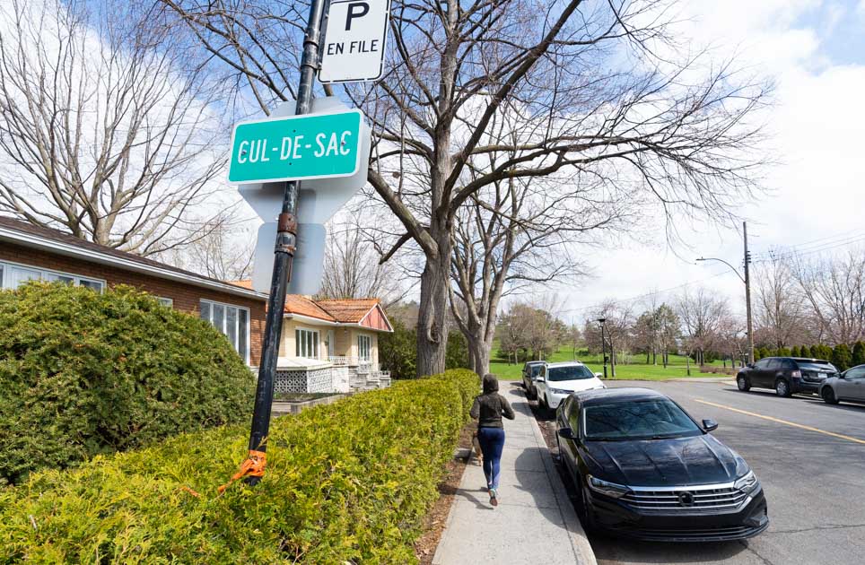 Dans les rues sans issue, les enfants peuvent jouer sans trop se faire déranger; les citoyens peuvent jaser en dehors des trottoirs, et la vie de quartier peut être animée, sans craindre que ses résidents se fassent klaxonner! Mais, ça n’encourage pas pour autant la mobilité active. Dans la majorité des cas, les rues en culs-de-sac et les impasses ne sont pas à proprement parler des rues perméables, c’est-à-dire qu’elles ne permettent pas aux piétons et aux cyclistes de se déplacer de l’une à l’autre, à moins que la trame urbaine n’ait été planifiée en ce sens. Et corriger cette trame pose des défis logistiques, étant donné les problèmes de propriété de parcelles de terrain à libérer, entre autres choses.
