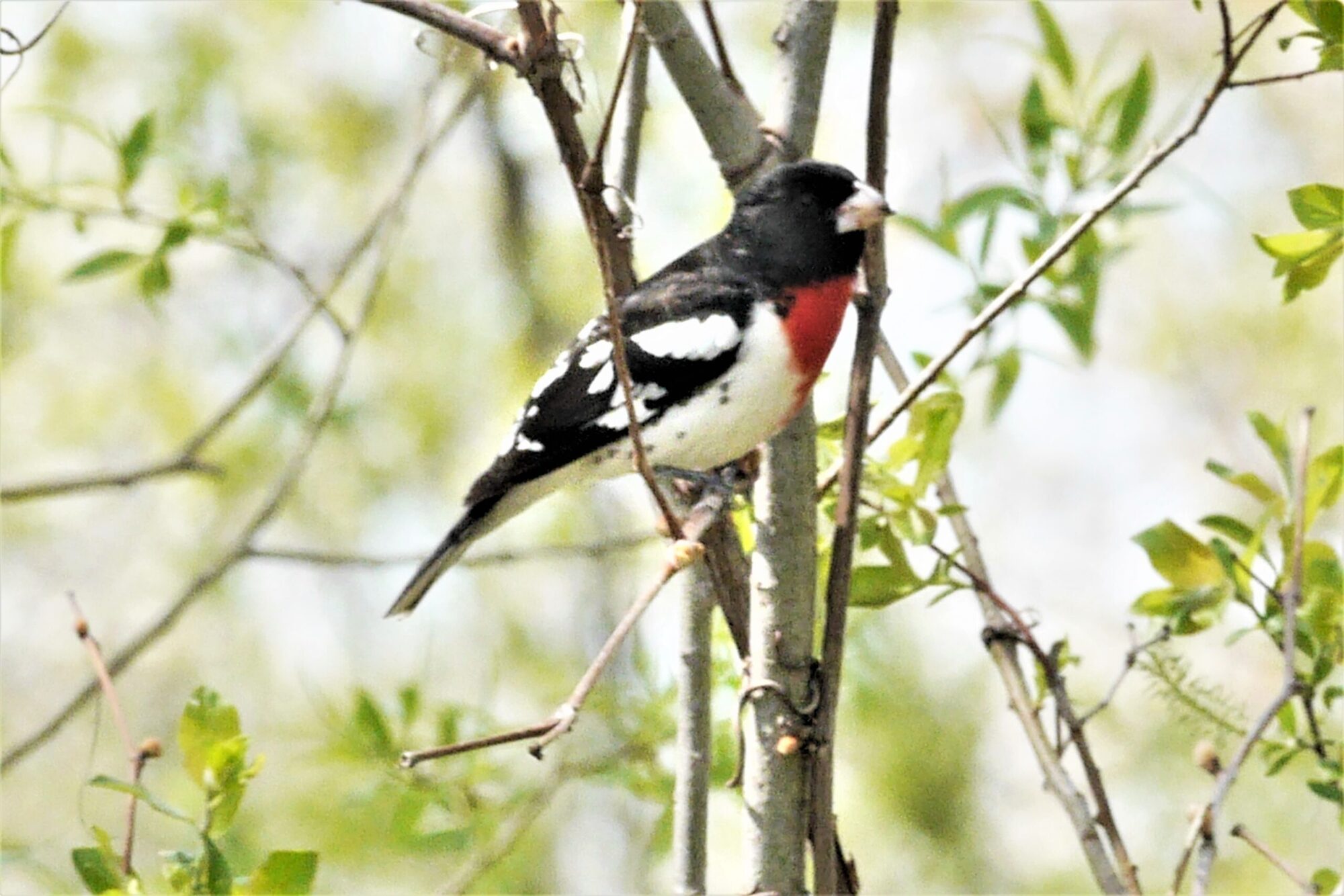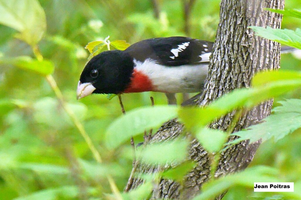 Cardinal à poitrine rose mâle (Rose-breasted Grosbeak)  (Pheuticus ludovicanus) – photo: J. Poitras