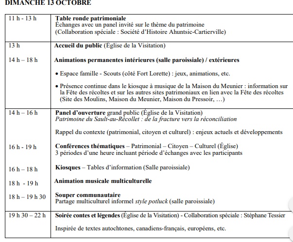 Les Amis du village historique du Sault-au-Récollet invitent tous les acteurs attachés au rayonnement et à la promotion de la richesse patrimoniale du Sault-au-Récollet, de sa vie culturelle et de son engagement citoyen à prendre part à la 1re édition de la Fête des récoltes du Sault-au-Récollet, du 12 au 14 octobre prochain à l’Église de la Visitation.