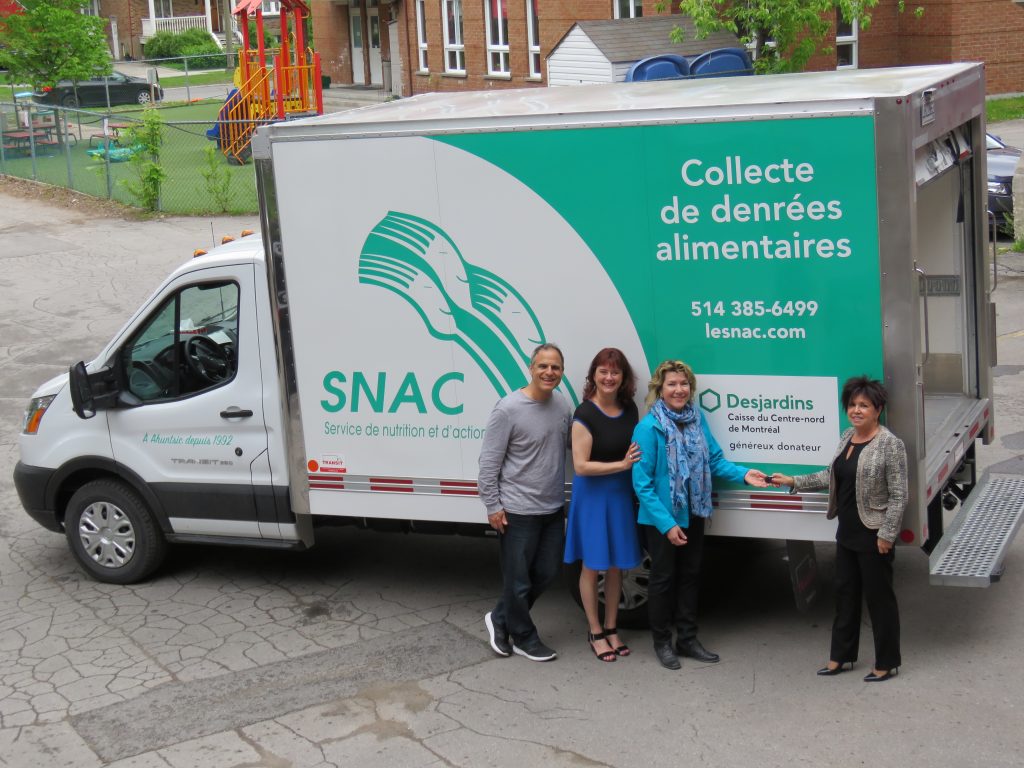 Pour pouvoir aller recueillir et distribuer davantage de denrées alimentaires, nous devions nous munir d’un plus grand camion. Chose faite, grâce à la Caisse Desjardins Centre-nord de Montréal et à un donateur du quartier Ahuntsic.