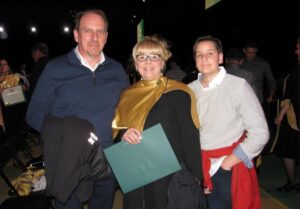 La chiropraticienne Chantal Doucet (Centre chiropratique Fleury Ouest), également professeure clinicienne à l’UQTR, a reçu récemment son diplôme de Maître ès sciences (M.Sc.) au programme de maîtrise en sciences cliniques, cheminement de type recherche. La remise s’est faite lors de la collation des grades à la Faculté de médecine de l’Université de Sherbrooke. On l’aperçoit, au centre sur la photo, entre son conjoint, Denis et son fils Carl-Éloi. (Photo: courtoisie)