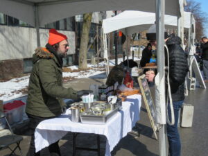 Le tout a commencé avec le spectacle de Julien Tremblay qui s’est tenu –Dame nature oblige!—au Bar 132, en soirée. Le samedi, alors que la température était beaucoup plus invitante, –soleil, mais froid au rendez-vous–  entre 11 et 16 h sur la rue Tolhurst, devant le parc encore glacé, s’est animée.