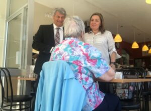 Le député Gérard Deltell et la candidate Kathy Laframboise ont rencontré quelques résidants d’Ahuntsic-Cartierville. (Photo: courtoisie)