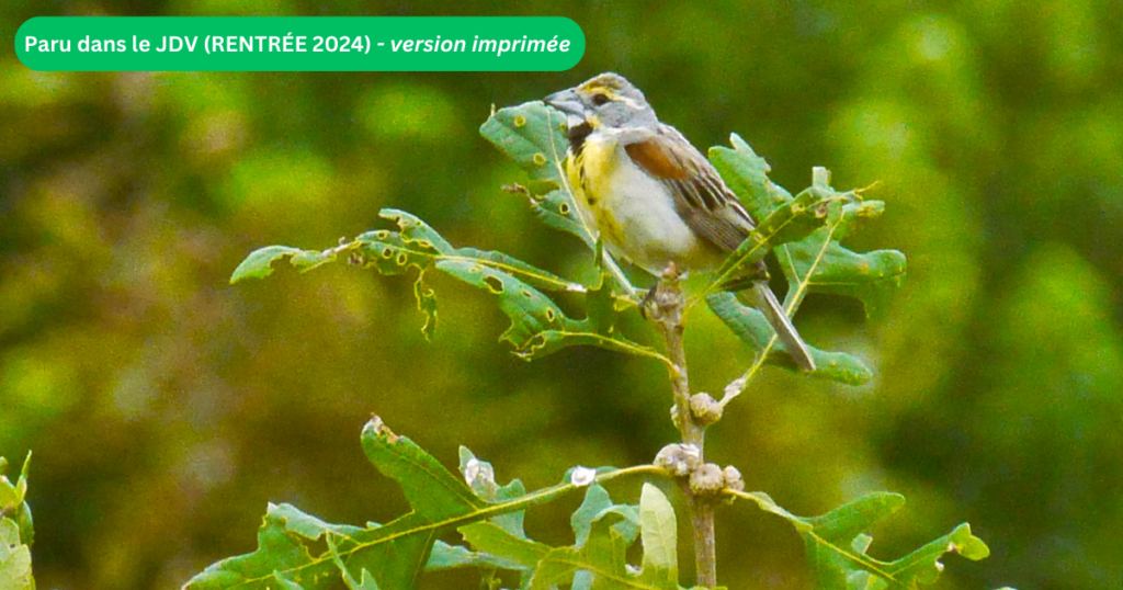 Le Dickcissel d’Amérique est de la famille des cardinalidés, donc un cousin de notre Cardinal rouge. Il est le seul représentant du genre Spiza de cette famille.