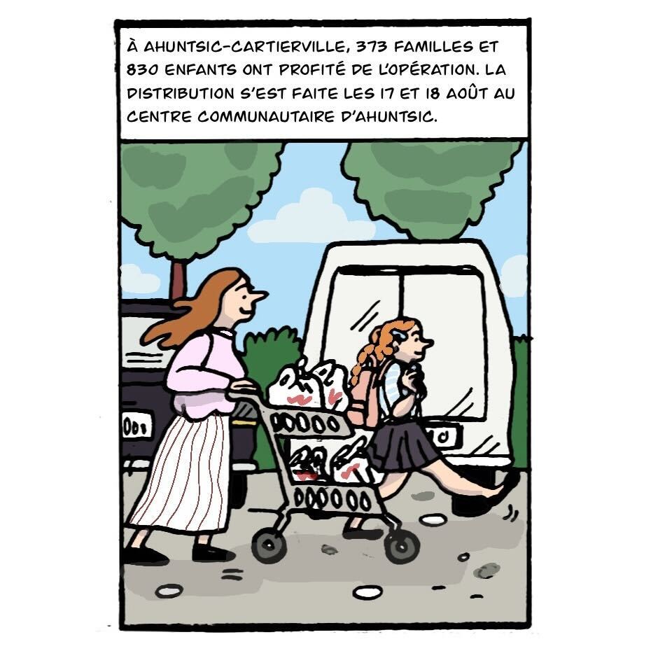 En outre, les familles peuvent profiter des Magasins-Partage, gérés par le SNAC (à Ahuntsic) et La Corbeille (à Bordeaux-Cartierville). C’est l’occasion de faire une épicerie complète à seulement 10 % de la valeur véritable des marchandises.