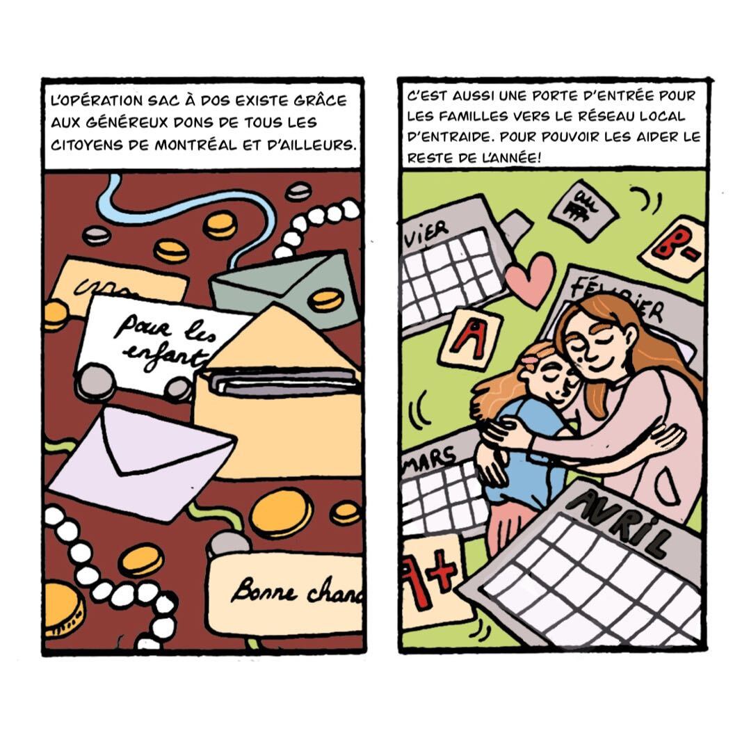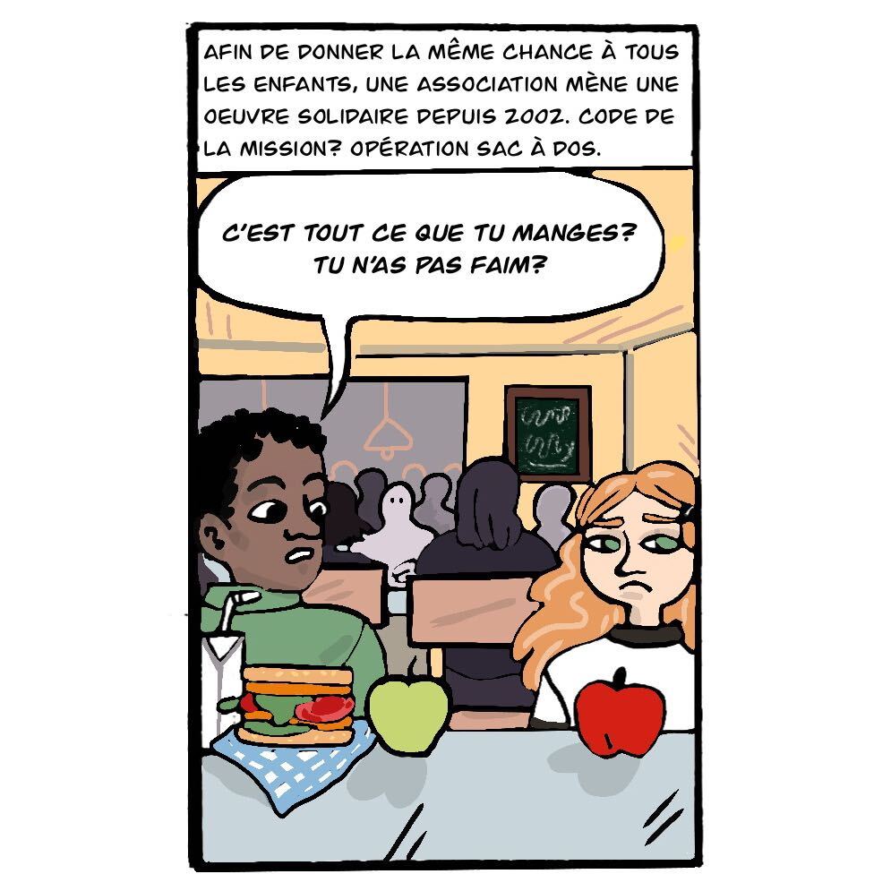 Dans cette bande dessinée, le Journal des petits voisins vous invite à la découverte de l’Opération sac à dos, qui permet aux enfants les moins bien lotis d’aborder la rentrée en toute confiance.