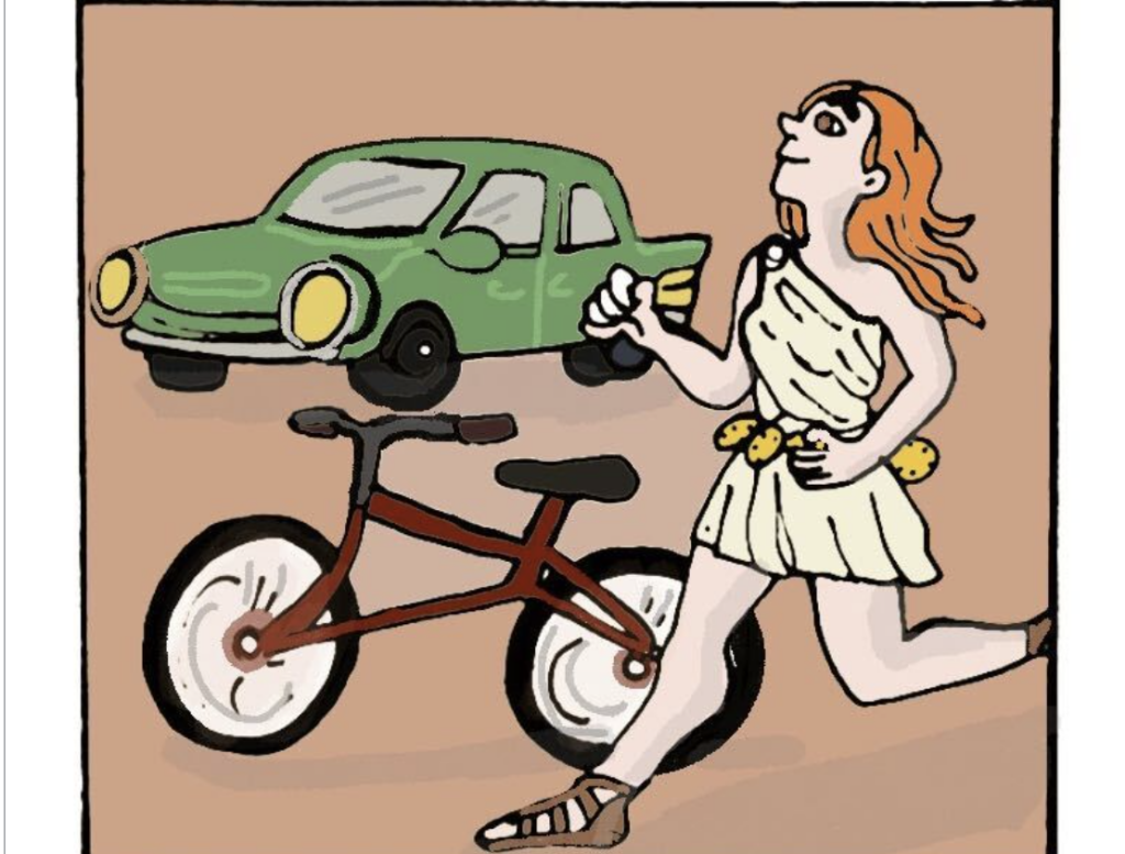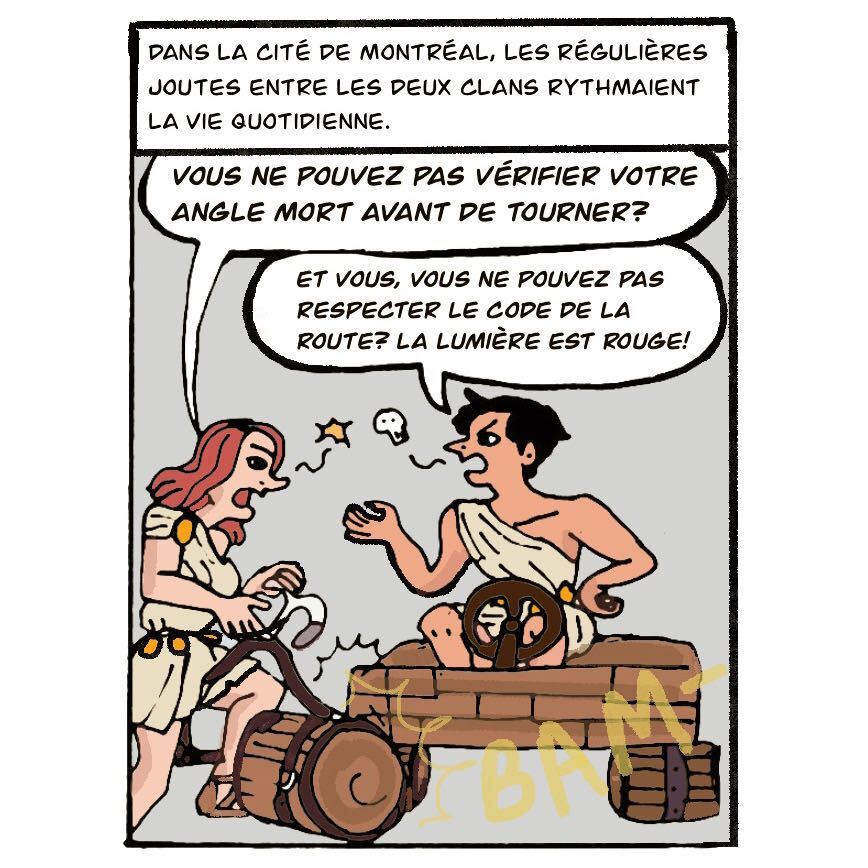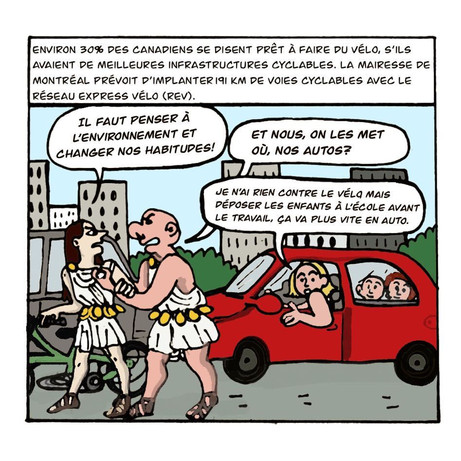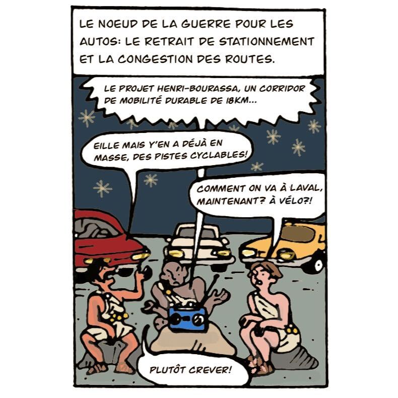 Dans cette bande dessinée, le Journal des petits voisins vous conte, sur fond d’humour, une querelle vieille comme le monde: les vélos contre les autos.