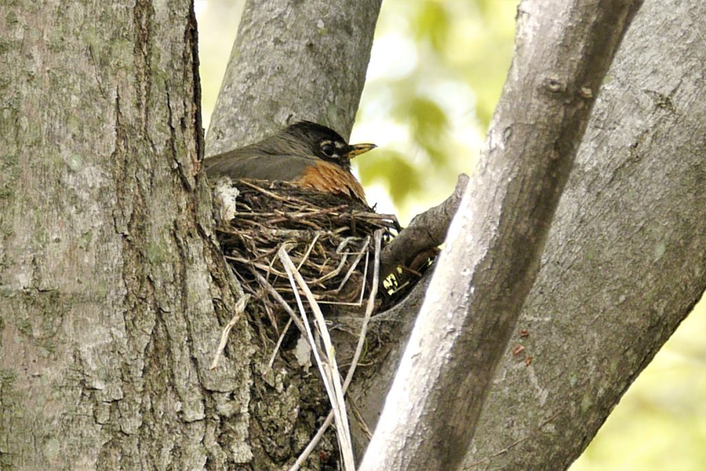 J’adore cet oiseau. Son chant mélodieux qui s’attarde en soirée est empreint de sérénité et de calme. Cette année, nous avons constaté qu’il y a un nid dans l’un de nos arbres à feuillage dense. Nous allons suivre cela de près mais « de loin » pour ne pas les déranger.
