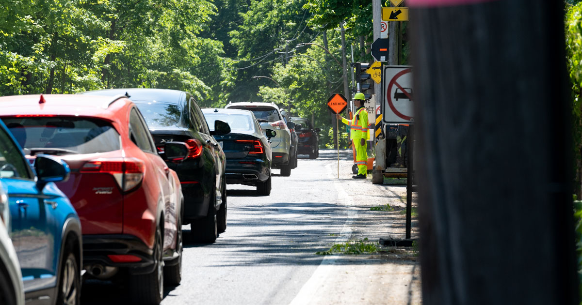 La circulation est à sens unique vers l’ouest dans le cadre des travaux sur le boulevard Gouin Ouest. (Photo: François Robert-Durand, JDV)