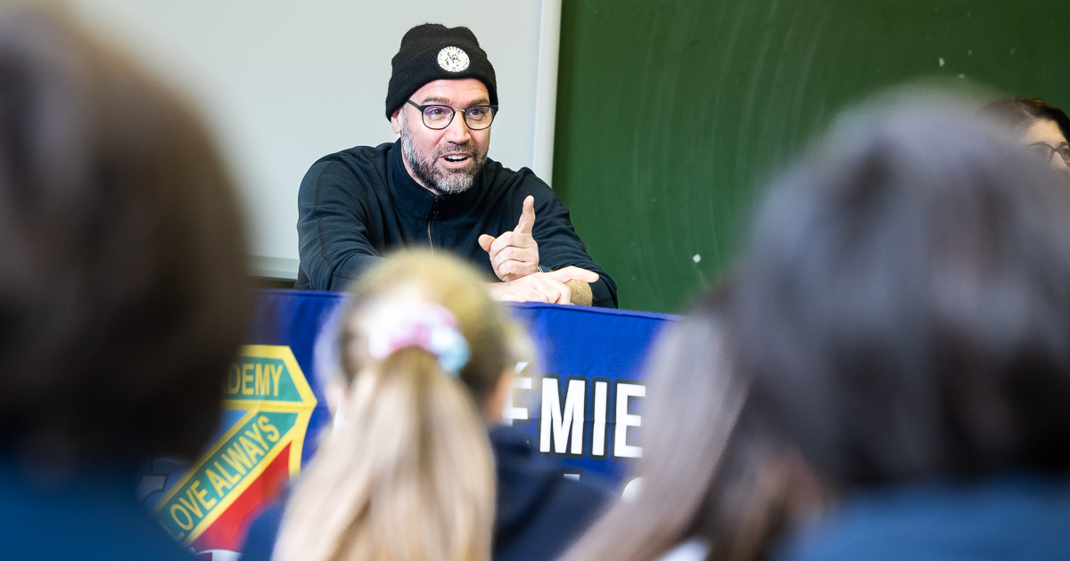 Stefano Faita raconte son parcours aux élèves de l’école John Caboto, qu’il a déjà fréquentée. (Photo: Toma Iczkovits, collaboration spéciale)