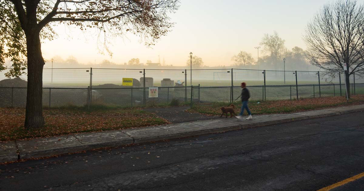 Il y a de ces matins où l’espoir de prendre des photos d’un parc en éternelle rénovation s’arrête là où débute un épais brouillard. Comment prendre un parc complet en photo (et comment s’y rendre sécuritairement!) lorsque nous voyons à peine deux mètres devant nous?