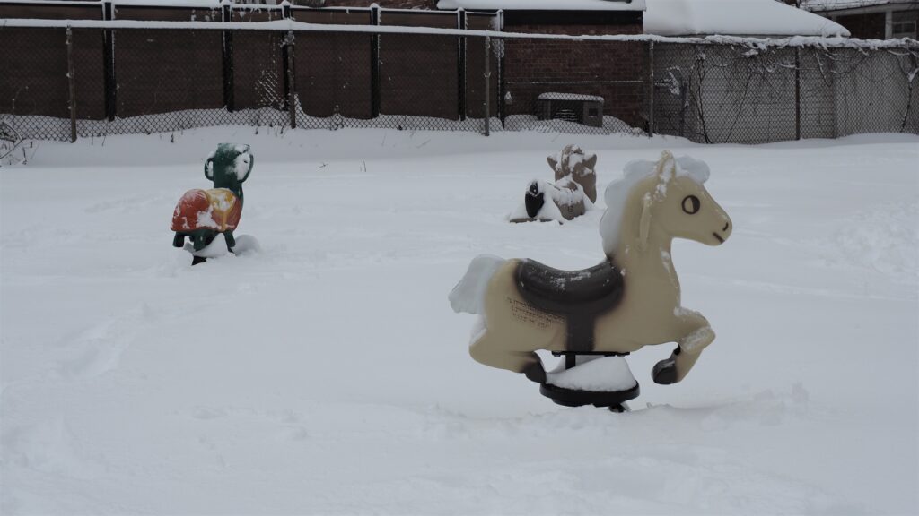 L’ancien module, un équidé blanc à la crinière noire et à la selle marron, avait cassé au début de l’été 2020, laissant ainsi les apprentis cavaliers du quartier sans autre monture qu’un exotique zèbre : un comble pour nos cowboys et cowgirls du Québec!