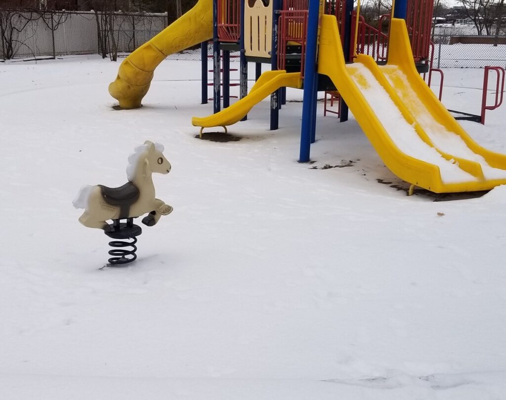 « On a bonifié le parc en ajoutant deux modules sur ressorts [NDLR : en plus du petit cheval] », a commenté Émilie Miskdjian, chargée de communication à l’arrondissement d’Ahuntsic-Cartierville, confirmant que l’ancien modèle avait brisé au niveau de son ressort.