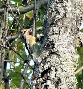 Cet écoulement de sève attire aussi des insectes, fourmis, mites et autres, dont le pic se régalera lors de ses visites. Il ne dédaigne pas les insectes qu’il peut capturer au vol ou sur le sol, et aussi les petits fruits de la saison estivale.