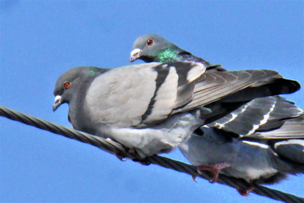 Des siècles d’hybridation sélective ont produit des oiseaux allant du blanc presque pur jusqu’à une forme foncée en passant par une variété de formes mouchetées. On observe souvent l’une ou l’autre de ces variétés dans les groupes de pigeons croisés au hasard de nos randonnées.