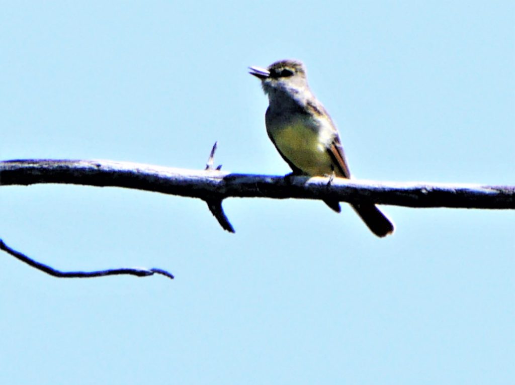 Parce qu’il est surtout forestier, il est moins visible que son cousin le Tyran tritri qui a fait l’objet d’une capsule publiée en avril 2017. C’est d’abord par son cri, un sonore « ouîîp », qu’on le repère alors qu’il s’alimente dans la canopée.