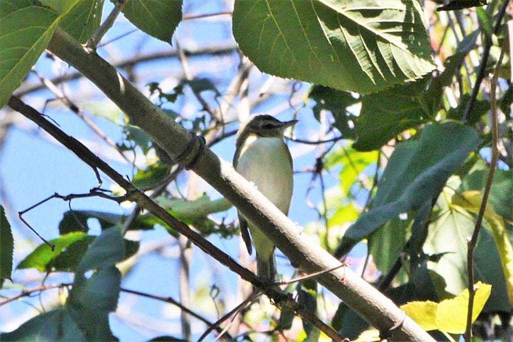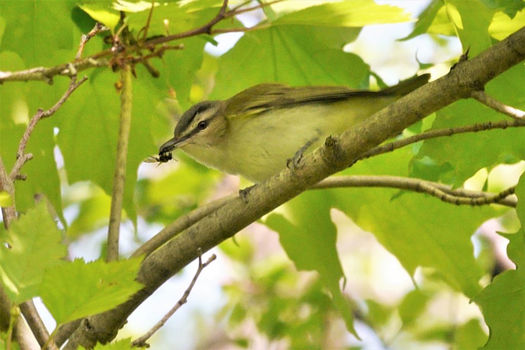 Tous les ornithologues vous le diront; cet oiseau n’est pas facile à observer. Il a l’habitude de se tenir dans la partie supérieure des arbres où sa teinte verdâtre lui procure un bon camouflage dans les feuilles. Comme le mâle est un chanteur infatigable, on l’entend plus souvent qu’on ne le voit.
