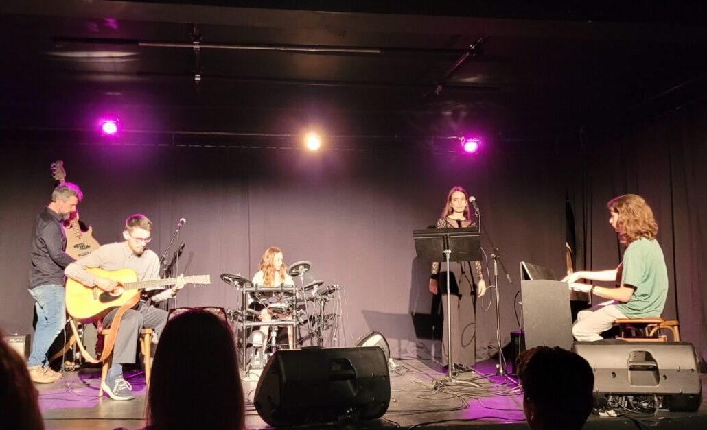 Marc Dionne (à gauche) accompagne plusieurs élèves de l’École des Arts et Musique lors des concerts de fin d’année, en juin 2023. (Photo: Séverine Le Page, JDV)