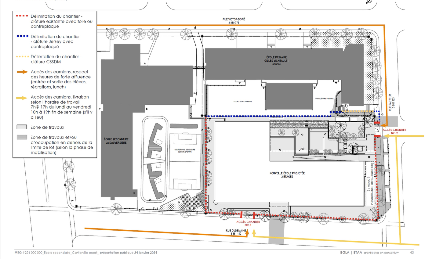 La fin du chantier est donc prévue pour la rentrée de 2026-2027. Lors de la présentation du projet aux parents d’élèves, menée en ligne le 24 janvier dernier, le Centre de services scolaire de Montréal (CSSDM) s’est voulu rassurant. Les nouvelles constructions, de bâtiments neufs de A à Z, respectent généralement leurs délais.